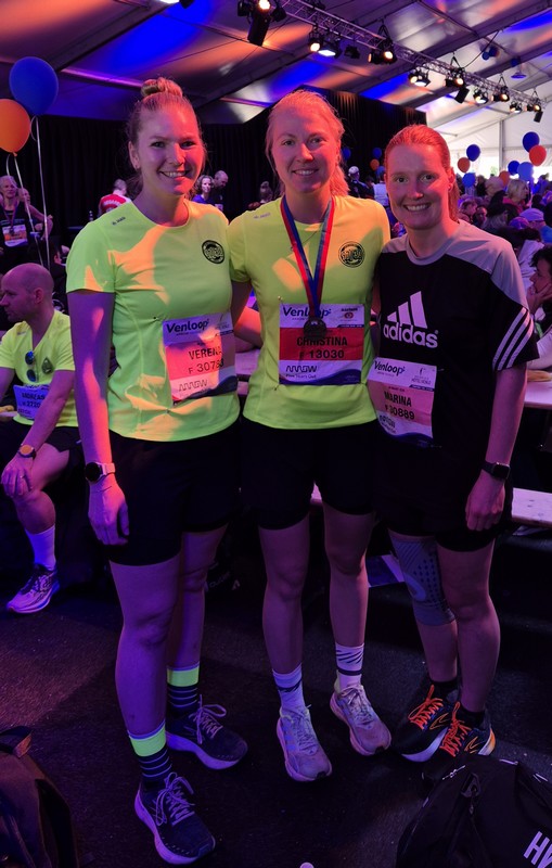 Nina Elsweier wurde begleitet durch ihren Ehemann Dennis und lief mit einer Zeit von 1:59:14 neue persönliche Bestzeit und unterbot die 2 Stunden Schallmauer. Dennis nutze den Tag als Trainingseinheit auf seinem Weg zum Ironman und fuhr mit dem Rad von Bocholt nach Venlo und nach dem Halbmarathon auch wieder zurück.