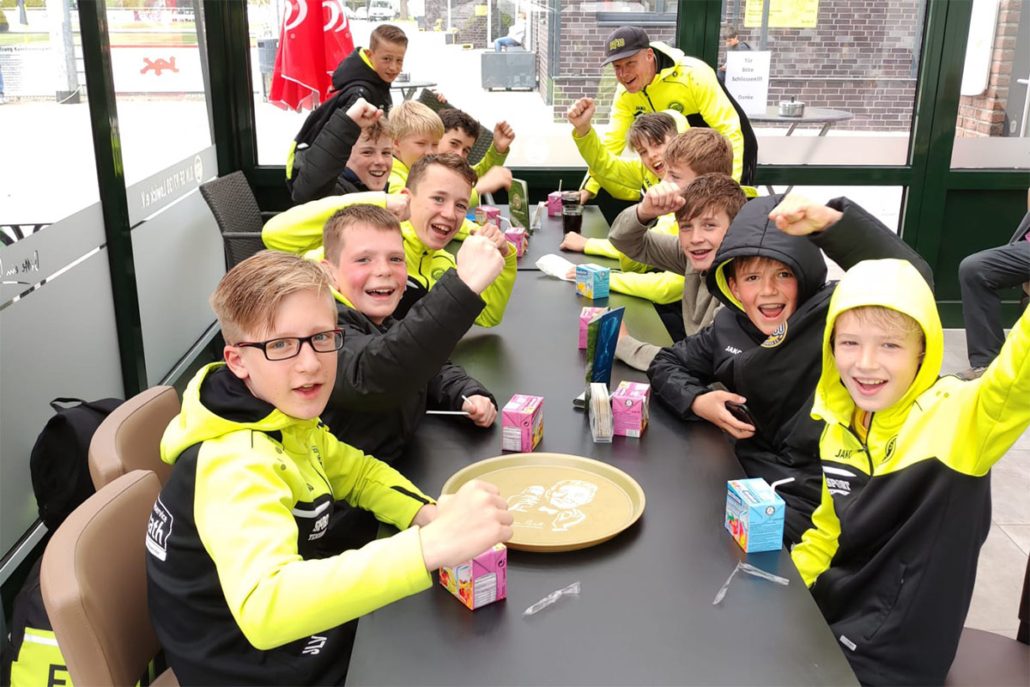 in den ersten Minuten der zweiten Halbzeit ging es hin und her und beide Mannschaften schienen auf Sieg zu spielen. In der 37. Minute ein Konter der Gäste, aber der Abschluss ging am langen Pfosten neben das Tor. Mitte der zweiten Halbzeit luchste Til dem Straelener Spieler im Spielaufbau den Ball ab und ging mit ihm ins Laufduell, kam zum Abschluss, aber das lange Bein des Abwehrspielers klärte zur Ecke. Diese wurde an den langen Pfosten geschlagen, der Straelener Abwehrspieler verpasste die Flanke und hinter ihm stand Henry, der mit dem Abwehrspieler hochgestiegen war. Der Ball hatte eine etwas seltsame Flugkurve, fiel Henry in der Luft auf den Fuß, er hielt den Schlappen hin und der Ball ging tatsächlich im kurzen Eck ins Tor. Drei Minuten vor dem Ende die letzte größere Chance der Gäste. Nach einer Ecke kam ein Straelener an den Ball und dieser ging an den Pfosten, von wo Luke ihn unter Kontrolle bringen konnte. Damit konnten wir die nächsten drei Punkte einfahren.