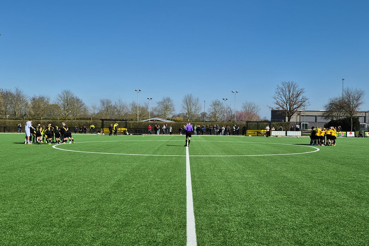 Mit Rückenwind und frischem Personal (Mattis kam für Mats) starteten unsere Jungs in den zweiten Durchgang. Doch mitten in unsere Drangphase hinein der Schock: Ein Distanzschuss der Homberger senkte sich unhaltbar unter die Latte – 0:1 (36.).