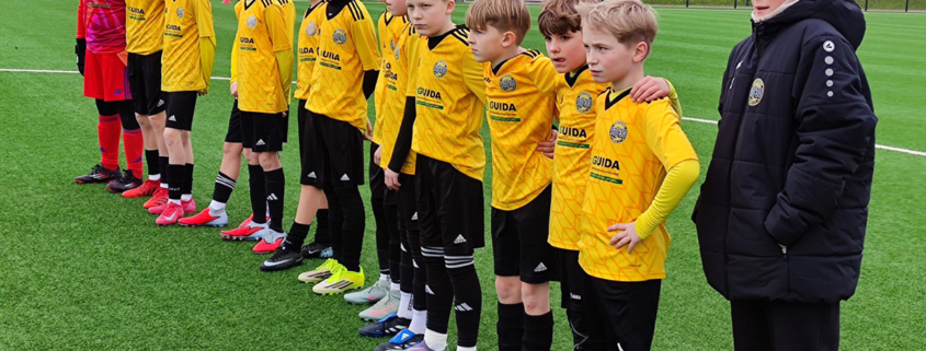Nach 14 Minuten lag der Ball nach einer Ecke plötzlich vor den Füßen von Ben B., doch sein Abschluss rutschte leider etwas zu harmlos über den Platz. Bis zur Pause gab es weitere gute Gelegenheiten, hinten hatten unsere Jungs alles im Griff, nur zwei Standards sorgten kurz für Puls.