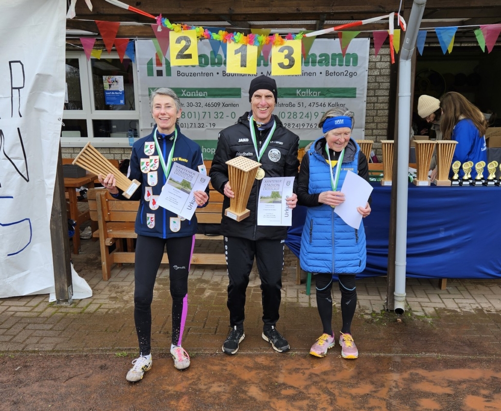 Über die Mittelstrecke von 3.810 m stand Friedhelm Betting am Start und peilte von Anfang an den Altersklassensieg an. Was ihm in einer Zeit von 15:27 auch super gelang. Da konnte der auch starke Konkurrenten Werner Kamps vom Hamminkelner SV mit einer Zeit von 16:25 nur staunen. Zum 3. Mal gewann Friedhelm damit einen tollen selbstgeschreinerten Pokal des Mitausrichters Christoph Verhalen und den Titel Regionscrossmeister in der Altersklasse M60.