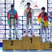Sensationell errang der Wettkämpfer Aslan Cavusman von den SF 97/30 Lowick am vergangenen Freitag bei der Junioren Europameisterschaft in Aigle / Schweiz einen überragenden dritten Platz in der Klasse bis 68 Kg. In seinem Auftaktkampf besiegte der für das Deutsche Nationalteam startende Bocholter, den Belgier Ilias Louchi mit 10:9 und 16:14 Punkten in zwei Runden. In seinem nächsten Kampf gegen den an 4 gesetzten Schweizer Lukas Magarnovic machte er mit 12:0 und 15:9 Punkten ebenfalls in 2 Runden kurzen Prozess. Sein nächster Gegner im Viertelfinale, der bis dato stark kämpfende Italiener Luca Fabian Serban, sollte ihm dann aber wirklich alles abverlangen. Nach mit 11:10 gewonnener ersten Runde, ging die Zweite mit 6:15 Punkten an den nervenstarken Italiener. Nun musste die dritte Runde über eine mögliche Medaille entscheiden und die konnte Aslan mit einer absoluten Energieleistung in den letzten Sekunden mit 13:11 Punkten für sich entscheiden. Im damit erreichten Halbfinale wartete der unter neutraler Flagge startende Russe Kazbulat Kazanchev, der ebenfalls seine Vorkämpfe mehr als souverän gewonnen hatte. Dort zeigte sich dann eindrucksvoll, wieviel Kraft und Energie die enge Begegnung gegen den starken Italiener dem Lowicker gekostet hatte. Immer bis zum Rundenende konnte der Bocholter auch diesen Kampf mehr als ausgeglichen und eng gestalten, ehe der Russe sich dann im letzten Drittel doch mit 13:20 und 11:23 Punkten den Einzug ins Finale sicherte. Die Freude über die errungene Bronzemedaille und der gezeigten Leistung wurde dann aber nochmals aufgewertet, als der Russe auch das anschließende Finale in 2 Runden gewann. Nun war es klar, denn der Lowicker Aslan Cavusman hatte das Halbfinale gegen den neuen Europameister verloren. „Ich bin einfach nur stolz auf meinen Sohn, der mit seinem Erfolg eindrucksvoll gezeigt hat, dass er in seiner Klasse zur absoluten Taekwondo Elite in Europa zählt,“ freute sich auch Lowicks Wettkampftrainer Cihan Cavusman, der als offizieller DTU Coach mit in die Schweiz gereist war.