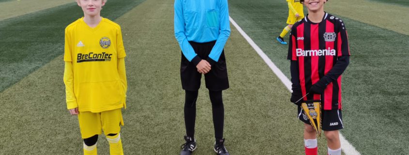 Auch im Mitteldrittel gehörte die erste Chance uns. Es waren sechs Minuten gespielt und es startete ein schneller Angriff über die rechte Seite. Leon zog zur Torauslinie und passte flach vor das Tor. Der Torhüter hechtete heraus, konnte den Ball aber nicht festhalten und Henry beförderte den Ball mit dem Rücken zum Tor stehend per Hacke über die Linie. Das gab neue Hoffnung. Dann eine schöne Kombination zwischen Til und Maik, der auch zum Abschluss kam – allerdings mit zu wenig Druck und der Torhüter konnte parieren (36.). Eine Minute später erneut Freistoß aus guter Position an der Strafraumgrenze – und erneut traf Jack nur einen rot-blauen Gegenspieler. Dann die große Chance zum Anschlusstreffer. Erneut marschierte Leon auf der rechten Seite und passte quer auf den freistehenden Maik, der aber den Ball nicht richtig traf (41.). Und wenn du vorne die Bude nicht machst, … – ihr wisst schon. In der 44. Minute ein Freistoß der Borkener in der eigenen Hälfte, der nur mäßig hart auf unser Tor geschossen wurde. Aber an Freund und Feind vorbei rollte der Ball ins Tor zum 4:1.