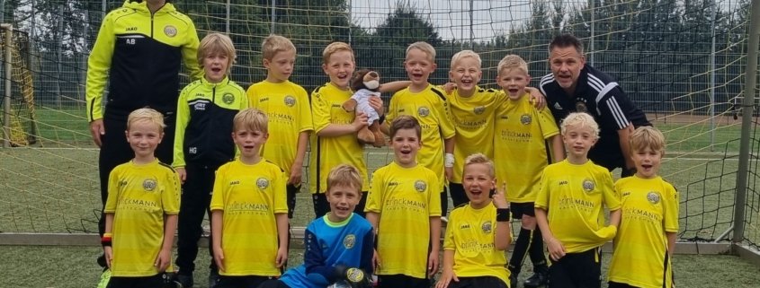 Nach einer Minute die erste kleinere Chance für die Schwarz-gelben. Luis setzte sich gut durch und bediente Jakob. Seinen Abschluss konnte aber Onur parieren. Nach 6 Minuten die erste Chance für die Gäste. Der Distanzschuss strich neben das Tor – aber Luke war auch in der richtigen Ecke. Nur eine Minute später tauchte Tristan alleine vor Luke auf. Nach einem Ballverlust kam er zum Abschluss, aber sein Schuss/Lupfer streifte nur die Oberkante der Latte. Bis zur 9. Minute gab es zwei weitere Abschlüsse der Schwarz-weißen, die in dieser Phase des Spieles fast alle wichtigen Zweikämpfe für sich entscheiden konnten. In der 12. Minute ein strammer Schuss eines Gästestürmers aus halblinker Position. Der Ball wäre wohl im oberen langen Winkel eingeschlagen, aber Luke konnte den Ball noch mit den Fingerspitzen über die Latte lenken. In der 22. Minute der zweite Abschluss für uns, aber Neeles Schuss wurde noch zur Ecke abgefälscht. Der FC gewann weiterhin fast alle wichtigen Zweikämpfe und hatte auch weitere Chancen – aber hinten stand weiterhin die Null.