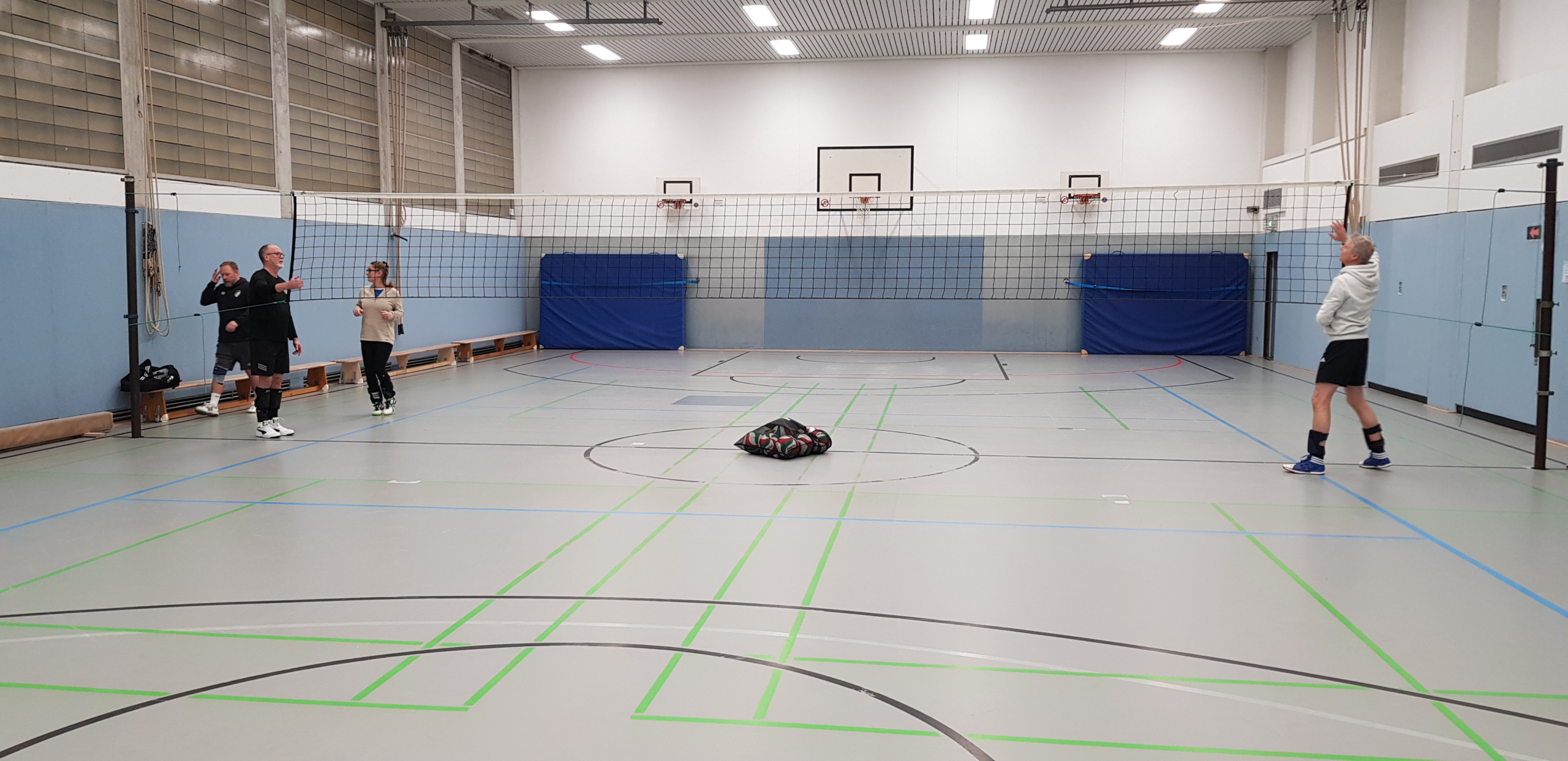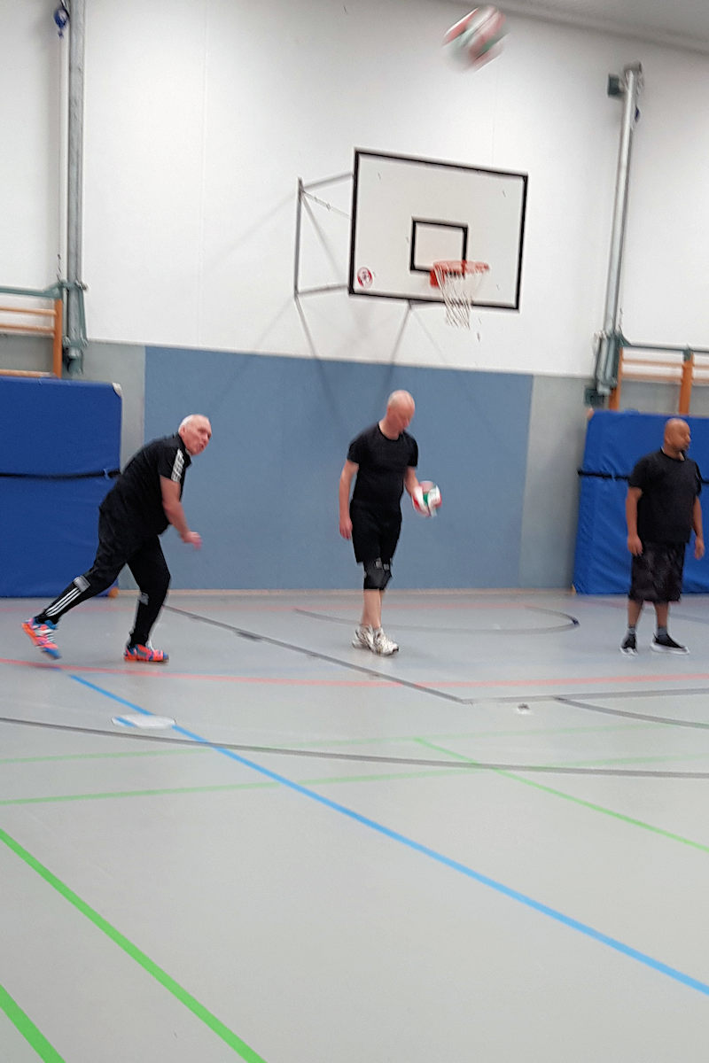 Mach’ mit, Spiel mit, ob Anfänger, Allrounder oder Fortgeschrittener erfahrener, Volleyball Spieler oder Spielerin im Erwachsenenalter, bei uns sind alle Sportler herzlich willkommen dieses Spass-und Bewegungsspiel mit Ball dies-und jenseits des Netzes kennenzulernen oder einfach mitzuspielen und Spaß dabei zu haben. Du möchtest im nächsten Urlaub auf dem Strandbeachfeld glänzen?  „Es ist noch kein Meister vom Himmel gefallen.”  Wir üben vor unseren Spielen Aufschläge, Ballannahmen, den Ball zu stellen. Komm dazu, pritsche, baggere oder schmettere den Ball übers Netz ins gegnerische Feld. Wir würden uns freuen! Aktuell sogar mit 10 nagelneuen Turniervolleybällen, die uns der Vorstand zur Verfügung gestellt hat. Das veranlasste Marc bei einer scheinbar nichtendenen Aufschlagserie zu der Feststellung: „Wow Thomas, die neuen Bälle sind echt gut.’